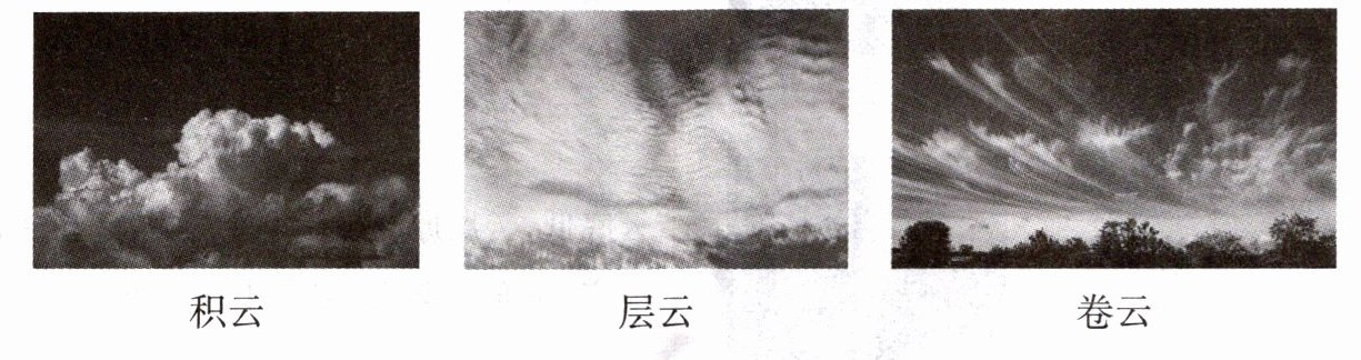 从形态上看,云主要有积云、层云和卷云;从所处的高度来看,云又分为高云、中云和低云。