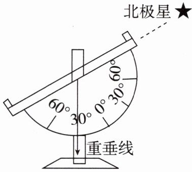11. 北极星的高度角等于当地的地理纬度。贝贝同学想知道自己学校所在地的地理纬度,选择了一个晴朗的夜晚,在老师的指导下按照图中的方式测得当地的地理纬度是( )