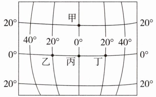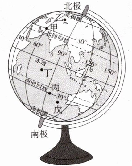 5. 图中甲、乙、丙、丁四地所在的纬线最长的是( )