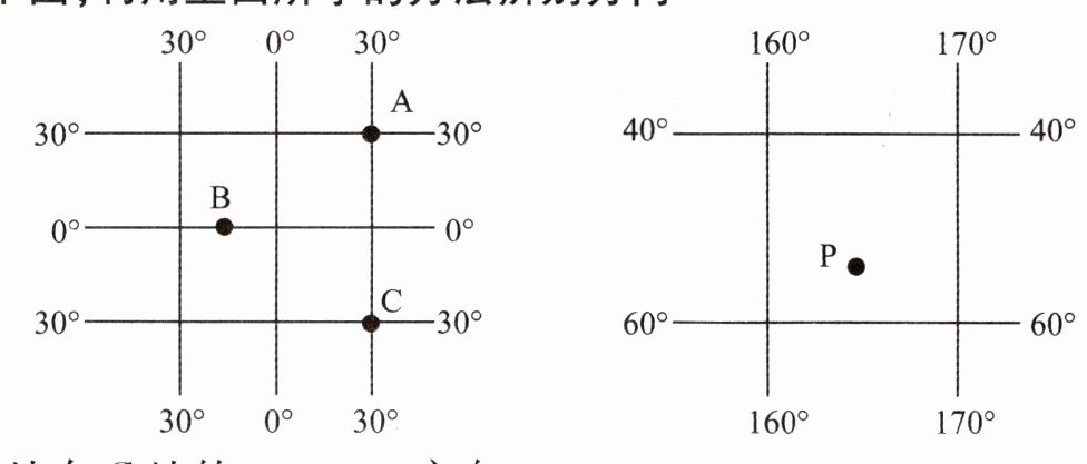 读下图,学会利用经纬网进行空间定位。