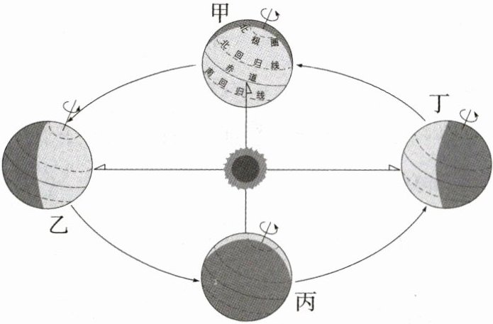 北京时间2024年7月3日22时51分,"神舟十八号"乘组航天员经过约6.5小时的出舱活动,圆满完成第二次出舱活动全部既定任务。下图是地球公转示意图,甲、乙、丙、丁表示北半球二分二至。读图,回答12~14题。