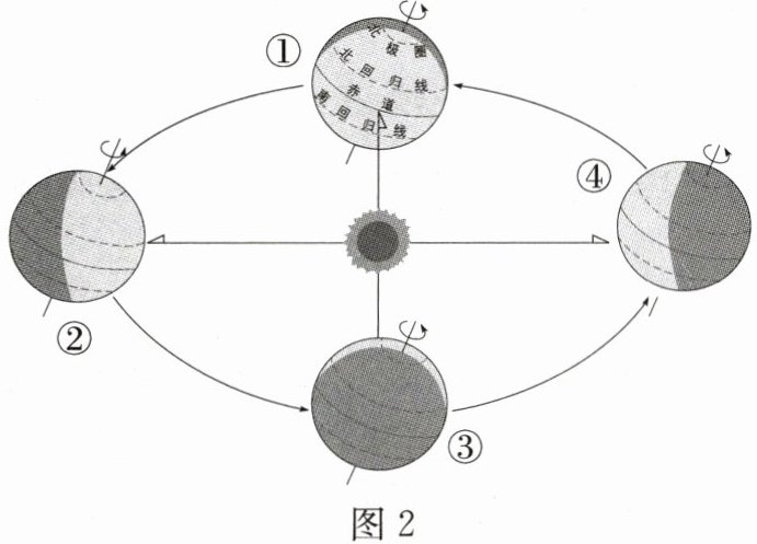 (广东阳江)2024年4月30日下午,“神舟十七号”载人飞船返回舱在东风着陆场成功着陆,“神舟十七号”三位航天员结束“太空出差”。读地球卫星影像(图1)和地球公转示意图(图2),回答4~5题。
