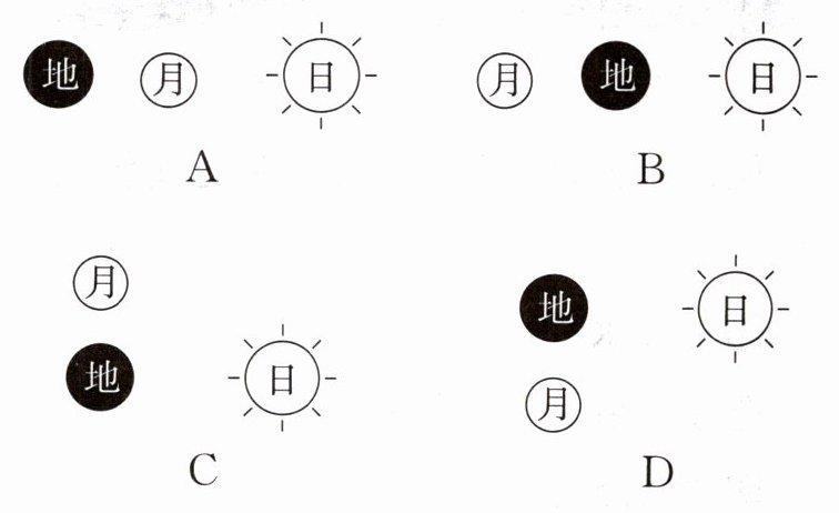 1. 当月全食发生时,太阳、地球和月球(非真实大小比例)的位置关系是( )