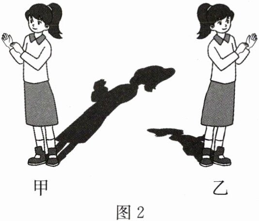 (4)读图2,假如玲玲的身高不变,请比较判断:如果图甲、图乙表示的是在同一天不同时间的影长,则更接近正午的是哪个图? 如果图甲、图乙表示的是在不同季节的正午时刻的影长,则更接近北半球冬至日的是哪个图? 并分析原因。(6分)