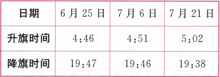 (2)天安门广场国旗与太阳同升同降,图1所示日期与表中______(填日期)最接近。(2分)