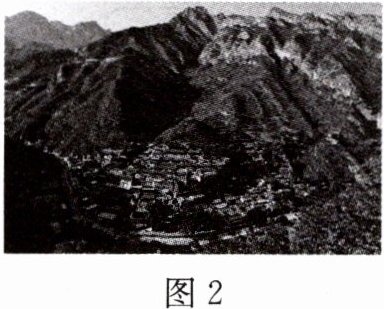 11. 放眼望去,爨底下村呈现出独特的元宝形(图2)。推测照片拍摄地位于图1中的( )