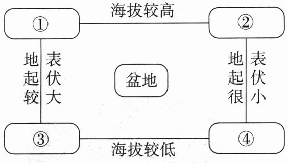 7. 下图为某同学绘制的陆地表面五种基本地形类型的区别与联系示意图。下列判断中正确的是( )