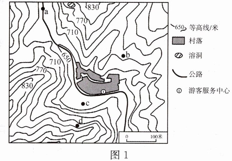10. 从c处攀爬至溶洞,攀登的垂直高差大约为( )