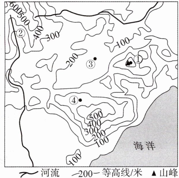 10.(北京中考)等高线地形图是认识地表高低起伏状况的地理工具。下图为某地等高线地形图。图中( )