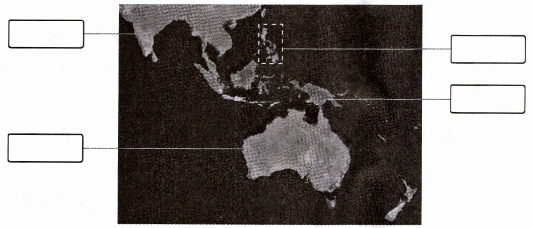 在图中方框内填出大陆、半岛、岛屿和群岛。
