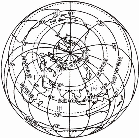 1. 图中甲、乙、丙、丁代表的大洲和大洋,正确的是( )