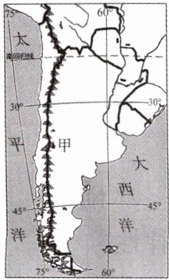 2. 在某大洲 $37^{\circ}S$ 附近可以看到的雄伟的甲山脉是( )