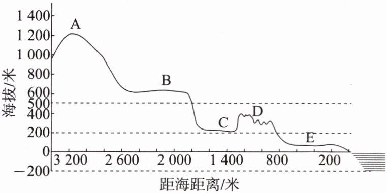 (2)图中 B、E 地形的共同特点是______,不同点是______。C 地形的特点是______。