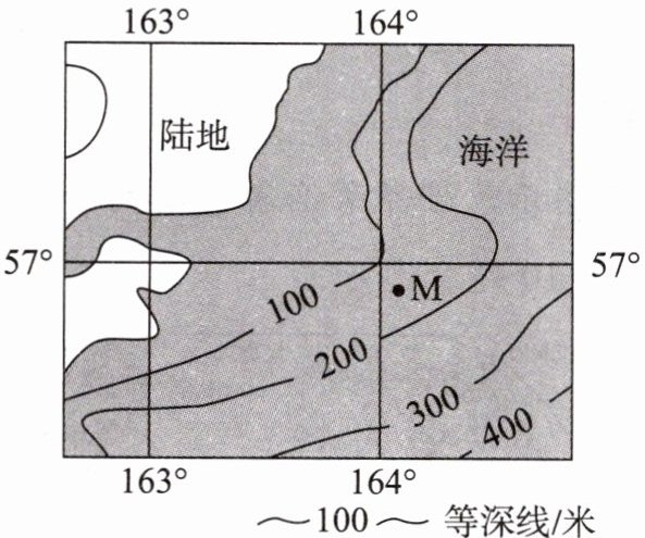 12. 读某海域等深线图,图示 M 地的海底地形是( )