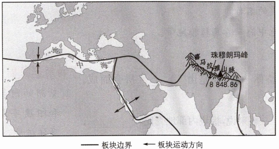(1)珠穆朗玛峰不断升高的原因