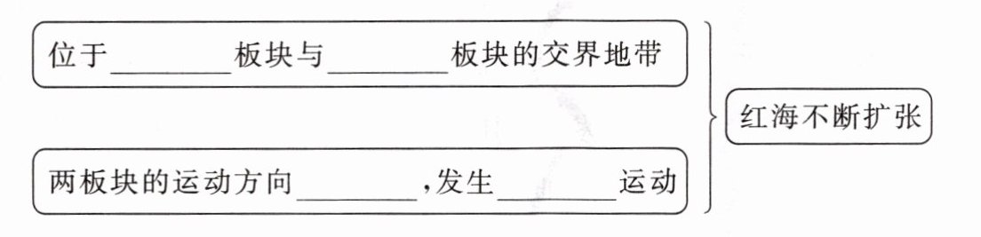A[位于____板块与____板块的交界地带] --> B[红海不断扩张]