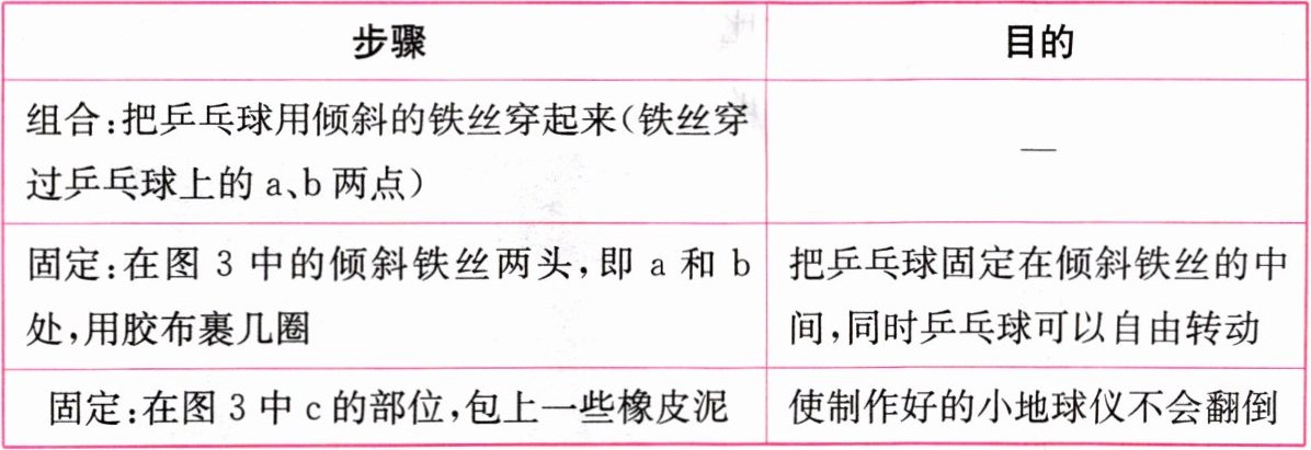 |固定:在图 3 中 c 的部位,包上一些橡皮泥|使制作好的小地球仪不会翻倒|
