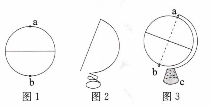 步骤:把铁丝弯成图 2 所示的形状,注意作为地轴的倾斜铁丝要与水平面成______角,同时所弯的半圆要比乒乓球的一半略大一些。