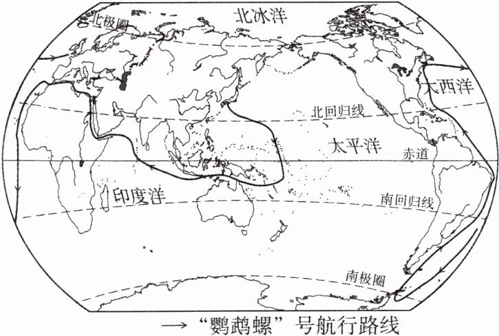 4. 通过“鹦鹉螺”号航行的路线, 并结合海陆分布知识可以得出 ( )