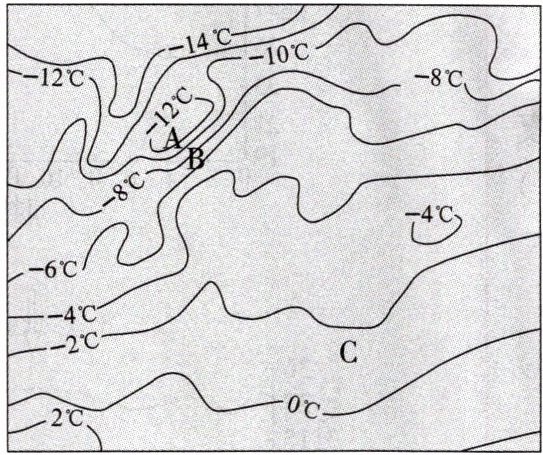 |C 地区等高线稀疏,表示坡度______|C 地区等温线稀疏,表示这里气温差异______|