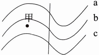 (5)下图中 a、b、c 为等温线,且$c > b > a$,若此时为冬季,则甲地为______(填“海洋”或“陆地”)。