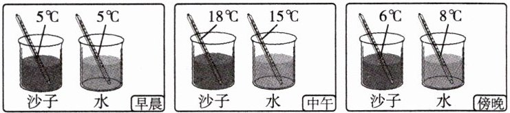 (2)比较沙子和水从中午到傍晚温度值的变化及温度变化的快慢。