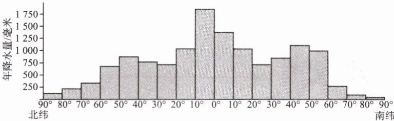 5. 下图为全球年降水量随纬度的变化示意图。读图,关于全球年降水量分布特点的描述,正确的是( )