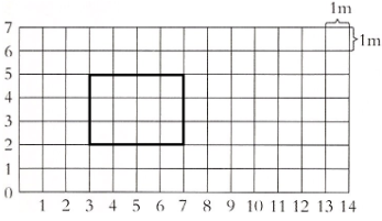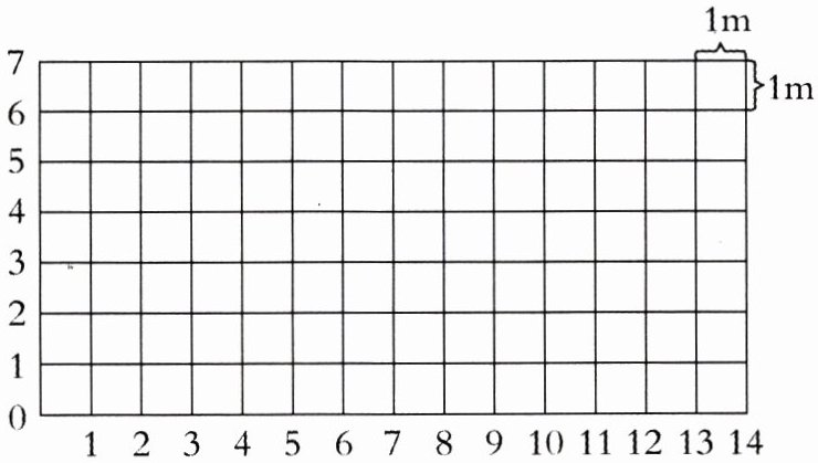 请在下图中画一个长方形ABCD,并使它的面积为$12m^2,$在下面写出A、B、C、D四个点的位置。