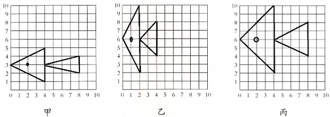 )2. 把每个点的第一个数扩大到原来的2倍,第二个数不变,得到一些新的点。然后在下面甲图中的方格纸上描出这些点,并将它们连成一条小鱼。