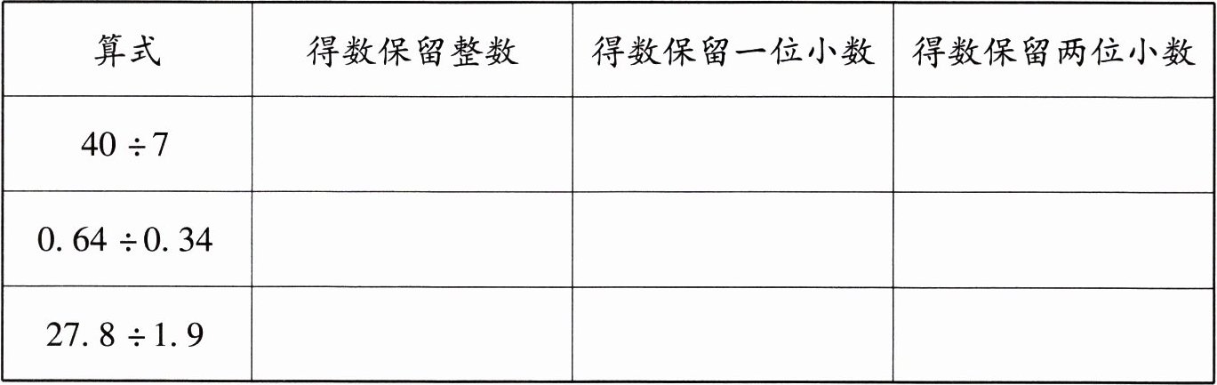 |算式|得数保留整数|得数保留一位小数|得数保留两位小数|