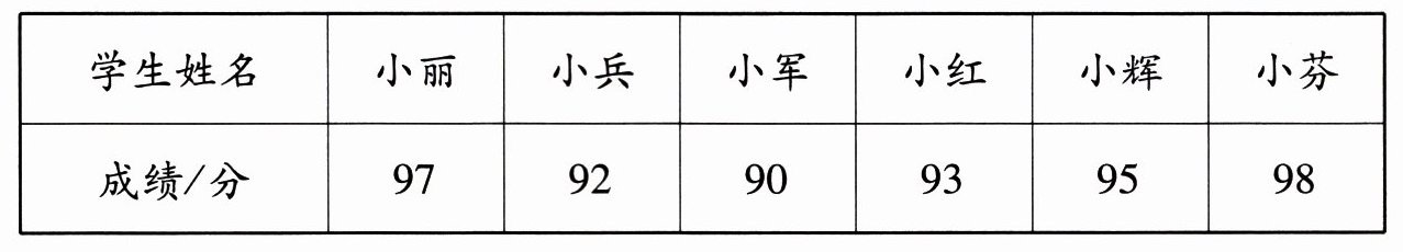 2. 在一次数学考试中,五(1)班几名学生的成绩如下。