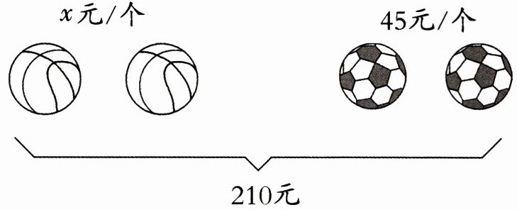 5. 解:2x + 2×45 = 210