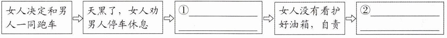⑤两个月前,女人决定和男人一同跑车,一路照顾男人,也看护油箱,现在车离家好几千公里。