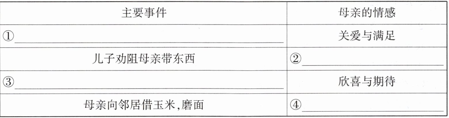 1. 阅读文章,梳理主要事件及母亲的情感变化,完成下表。(4分)