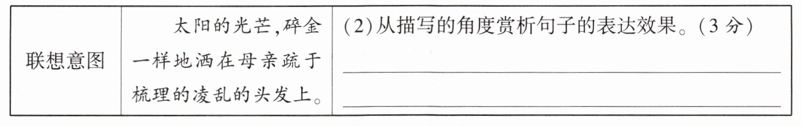 2. 请同学们阅读文中两处画线句,调动体验,发挥联想和想象,体会人物情感。(7分)
