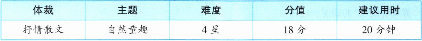 (2)示例:运用排比、比喻、拟人的修辞手法,(1分)秋风分别走过田野、果园、旷野,留下金黄的色彩,又将柿子比喻成小红灯笼,将石榴看成胖娃娃,生动形象地表现出秋风走过为人们带来丰收之景,(1分)表现了作者对秋风的喜爱之情。(1分)3.题目的表层含义是文章记叙的是“我”给孩子们上写作课,让孩子们描摹秋风的故事;(1分)深层含义是孩子们对秋风的描摹让“我”出乎意料,(1分)带给“我”感动与感慨:即使在肃杀的秋风中,孩子们的童心,也让“我”窥视到生命的可亲和可爱。(1分)4.“我”年复一年地教书,少了对生活的好奇与预期,因而固化僵硬地认为秋风寒冷、残酷、荒凉。成人经历人生浮沉,深感现实的艰苦,面对秋风倍感生活之愁苦。(2分)文中的孩子纯真美好,总是用发现美的眼光、用善于联想与想象的童心看世界,认为萧瑟的秋风是大剪刀、魔术师、娃娃和小仙女,充满着童趣之味,富有别样美。因此,成人和孩子眼中的秋风截然不同。(2分)