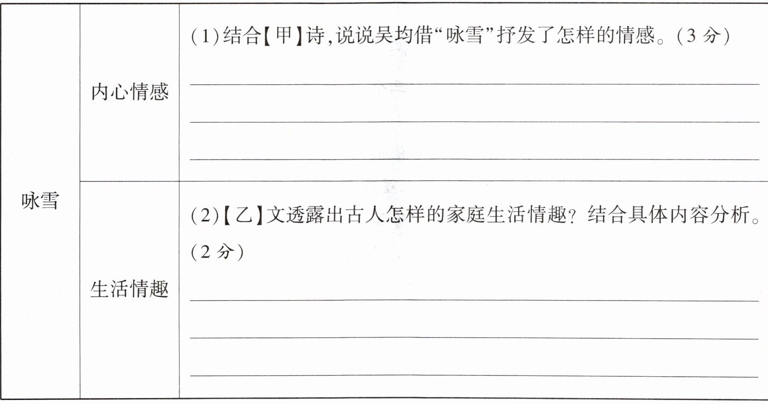 5. 小语以《咏雪》为主题进行了阅读探究,请你帮助她完成下面的表格。(5分)