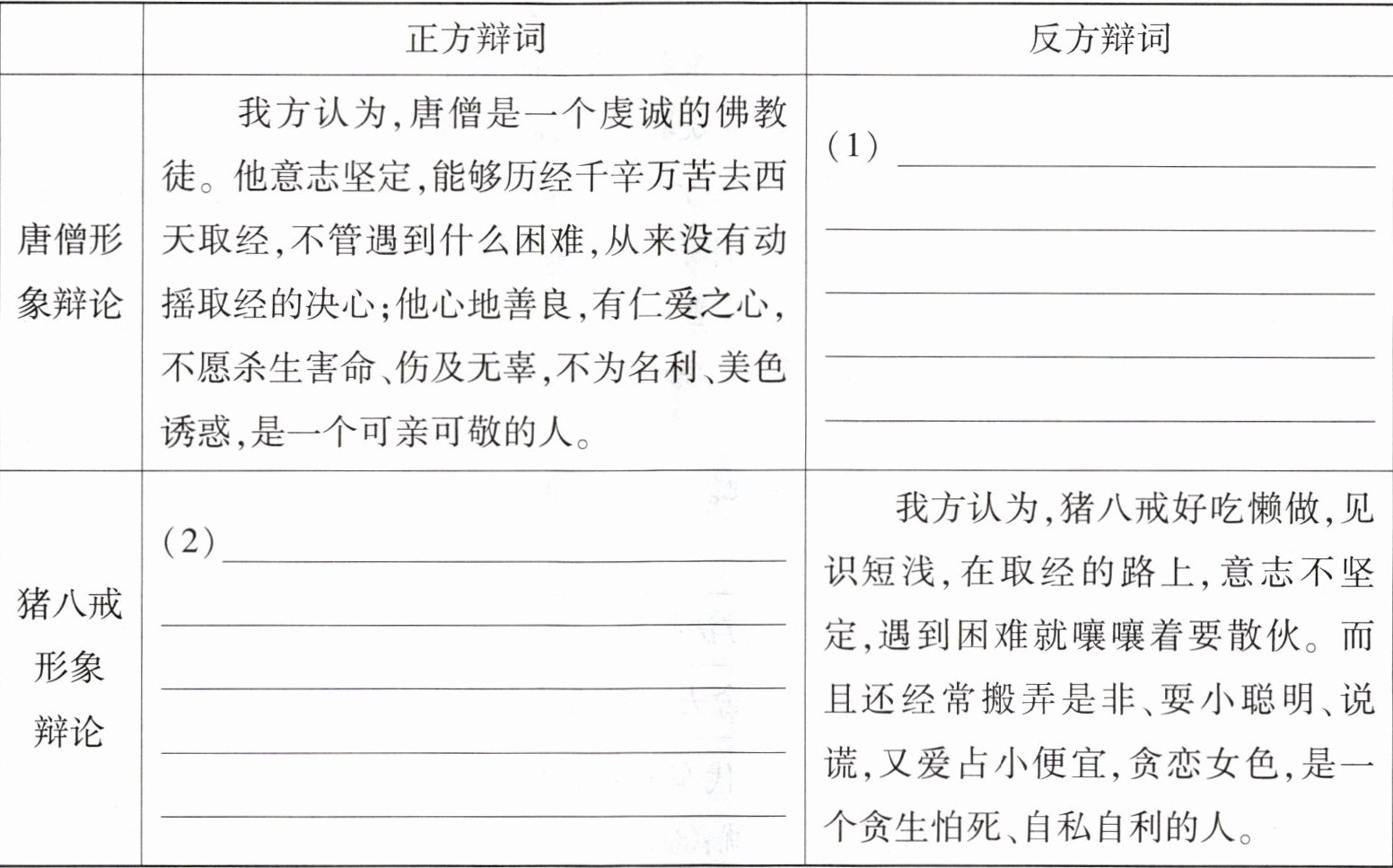 文学作品中的人物形象总是复杂而多变,为了深入了解《西游记》的主旨,某班同学开展以“《西游记》人物形象”为主题的辩论活动,请你帮助同学们完成下面的题目。