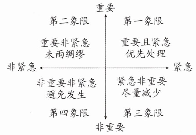 【材料二】如何管理好目标? 可以利用时间管理“四象限法”,把事情分为:重要、不重要和紧急、不紧急。