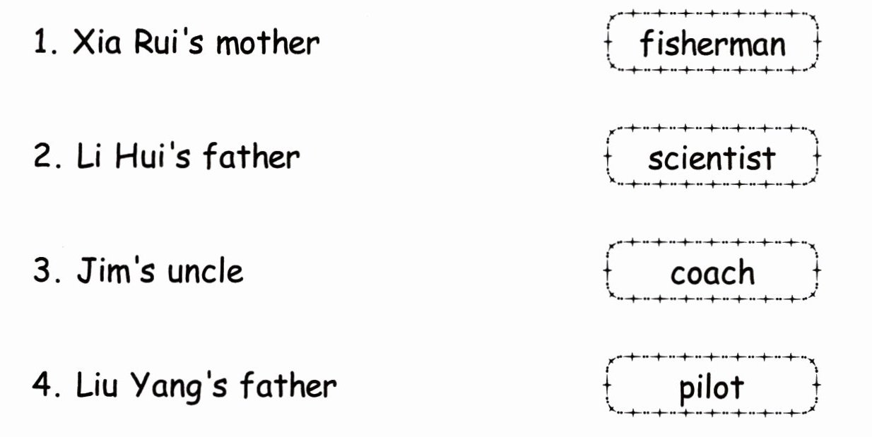 3. 第三张图片中,一个男孩在踢足球,这通常与教练相关,因为教练会指导孩子踢足球,所以对应的英文单词应该是“coach”(教练)。