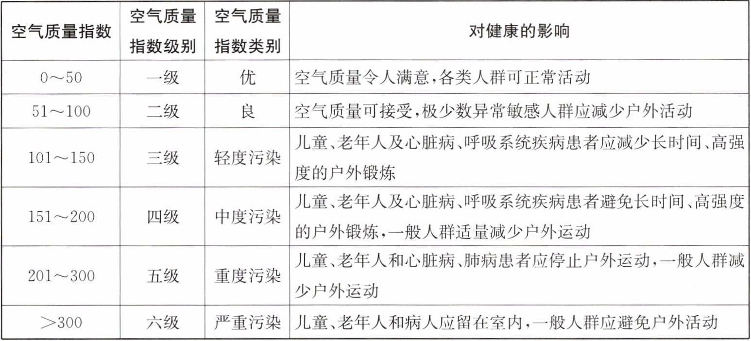 2. 学校拟定 12 月 1 日开展“迎新长跑”活动,查看天气预报后发现,当天的空气质量指数是 118。根据以上信息,你对学校开展此项活动的建议是 ,理由是 。