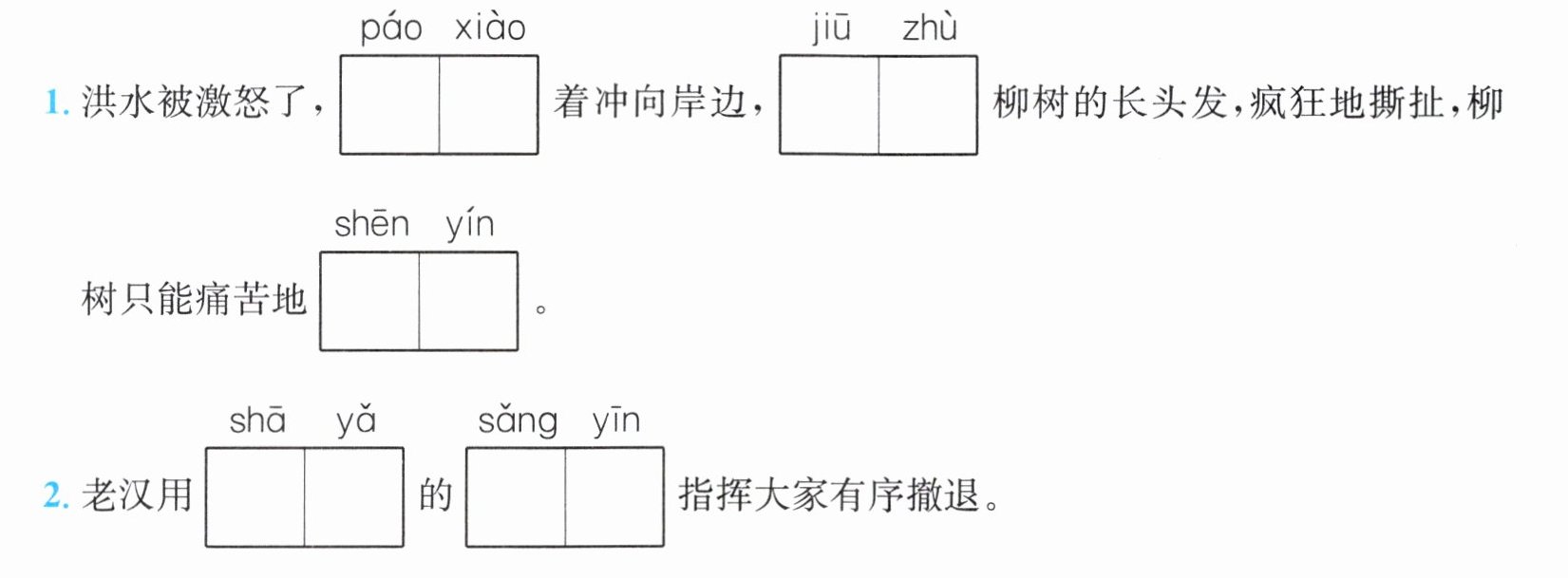 1. 大;猛;山洪暴发;瓢泼大雨;狂风暴雨