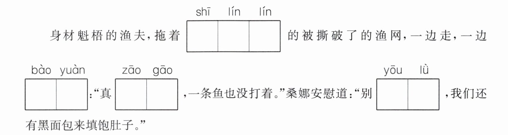 1. 渔夫皱起眉,他的脸变得严肃、忧虑。(