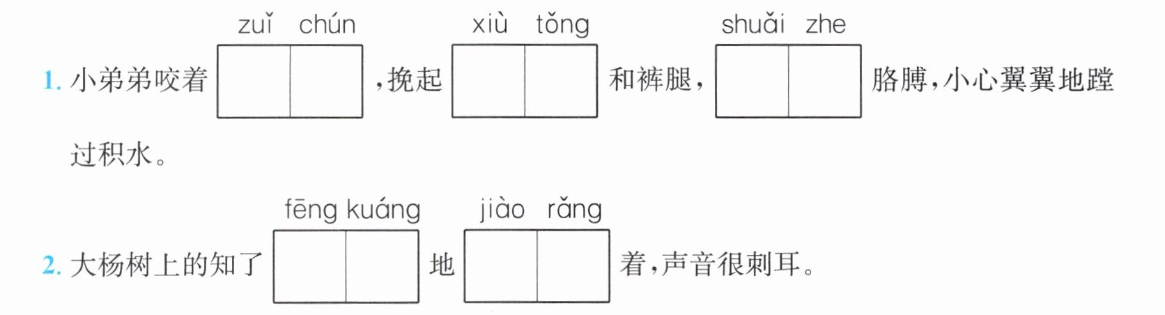 1. 嘴唇 袖筒 甩着 2. 疯狂 叫嚷