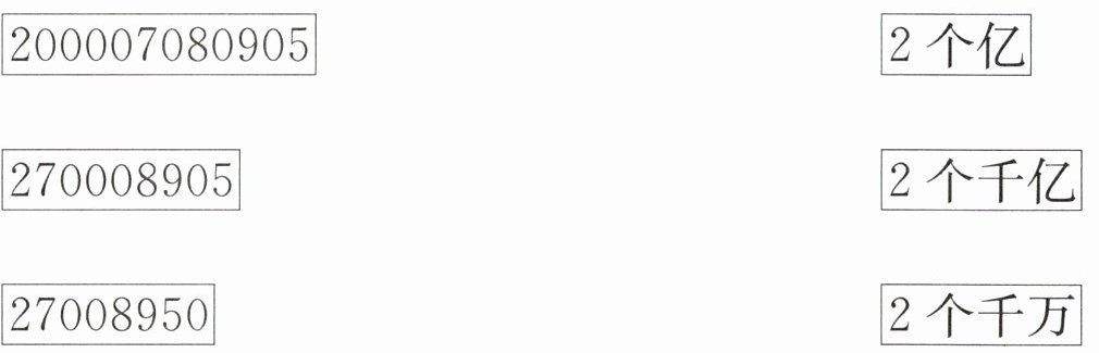 2. $200007080905 - 2$个千亿;$270008905 - 2$个亿;$27008950 - 2$个千万。