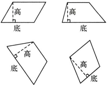 4. 请在点子图上画一个平行四边形和一个梯形,并画出它们的高。