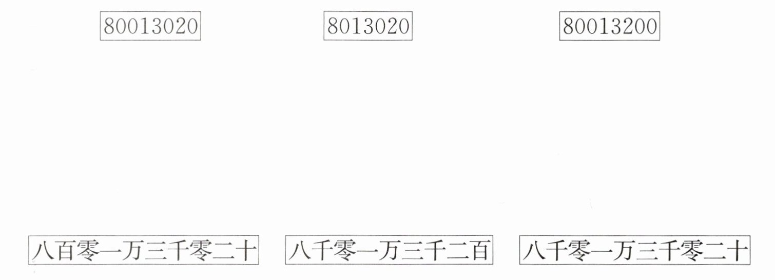 80013020—八千零一万三千零二十;8013020—八百零一万三千零二十;80013200—八千零一万三千二百