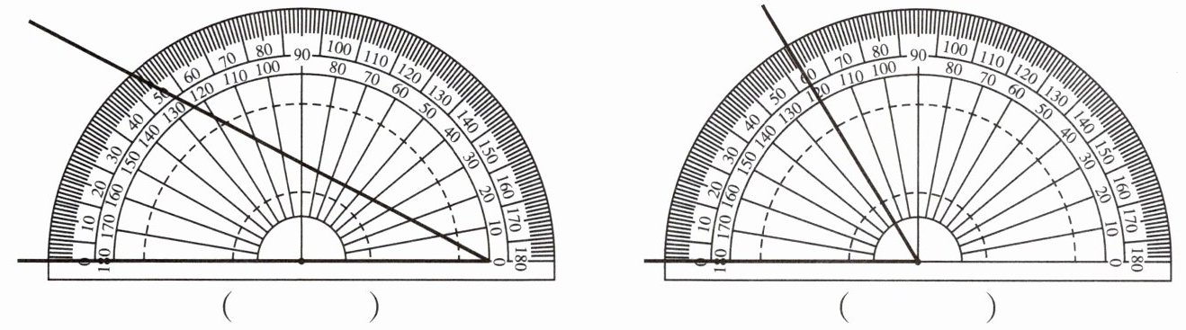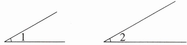 四、量出下面两个角的度数,并比较它们的大小,说一说你发现了什么?