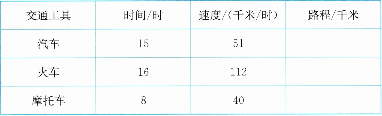 小丽和妈妈去外婆家,去的时候乘汽车,用了 5 小时,回来时乘火车,火车的速度是 120 千米/时,用了 3 小时。
