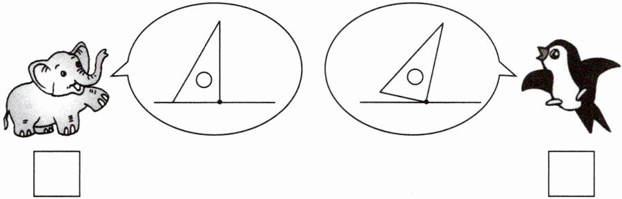 五、谁画的垂线正确?在下面的$□$里画“√”。